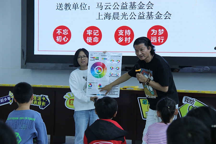 晨光公益基金會多年來攜手馬云公益基金會參與鄉(xiāng)村教育,這次也特地由兒童美術(shù)事業(yè)部吳鈞老師給鄉(xiāng)村的孩子帶來一堂精彩有趣的創(chuàng)意美術(shù)課。