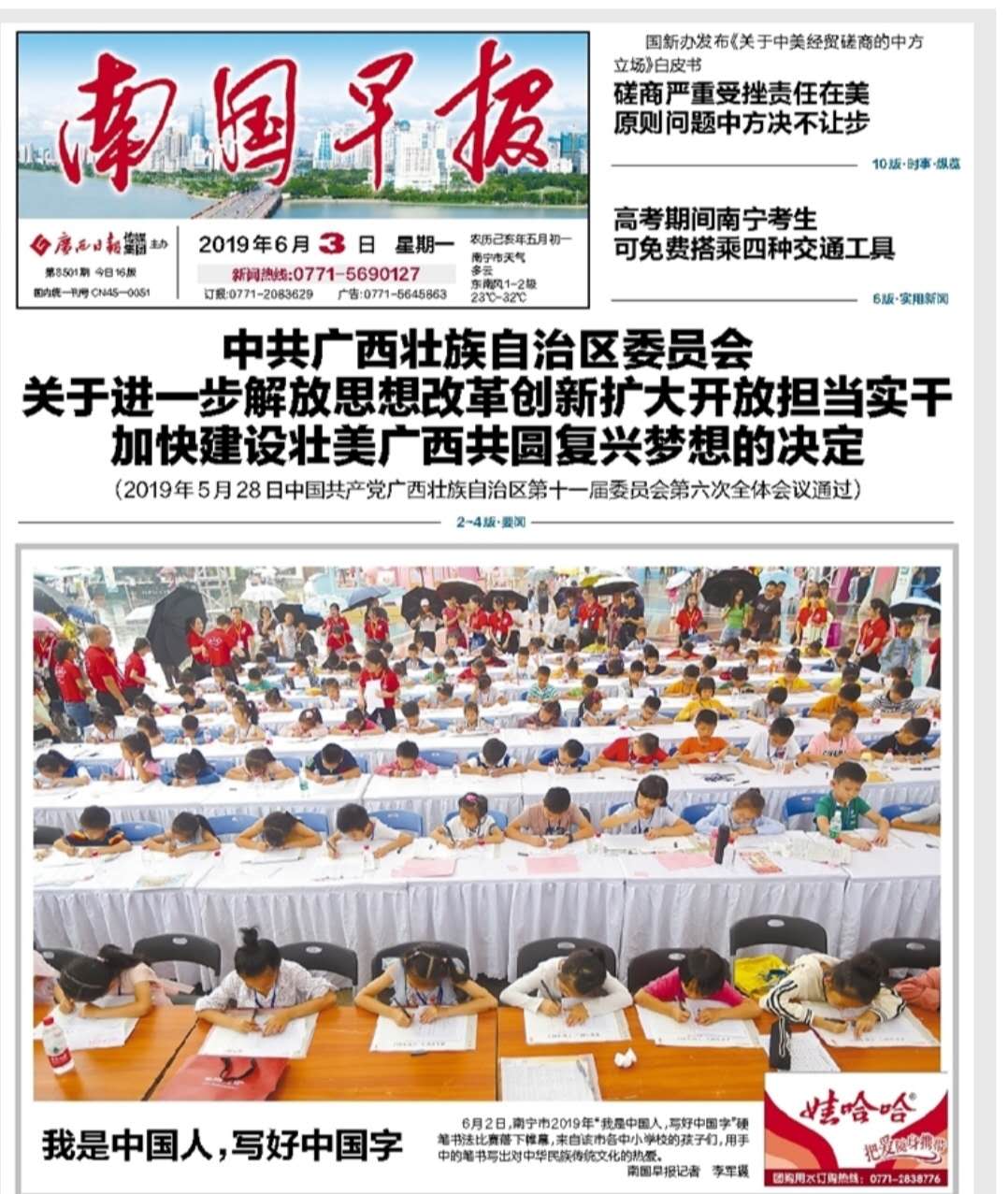 在廣西貴港市,在貴港市青年書法家協(xié)會的支持下,于貴港萬達(dá)廣場和西江小學(xué)舉行了兩場大型線下書法比賽。同學(xué)們在賽場紛紛揮毫潑墨,用心書寫中國字。